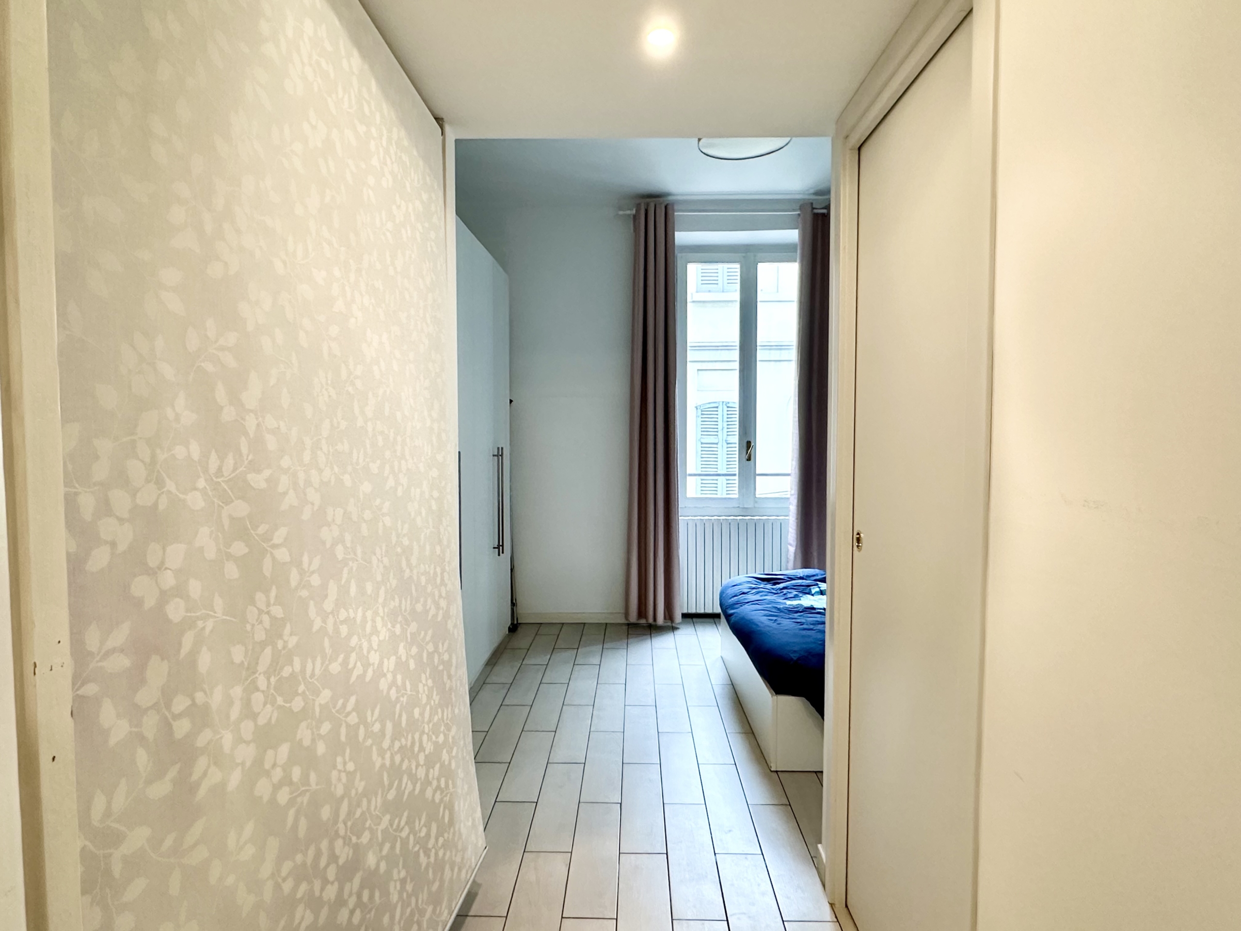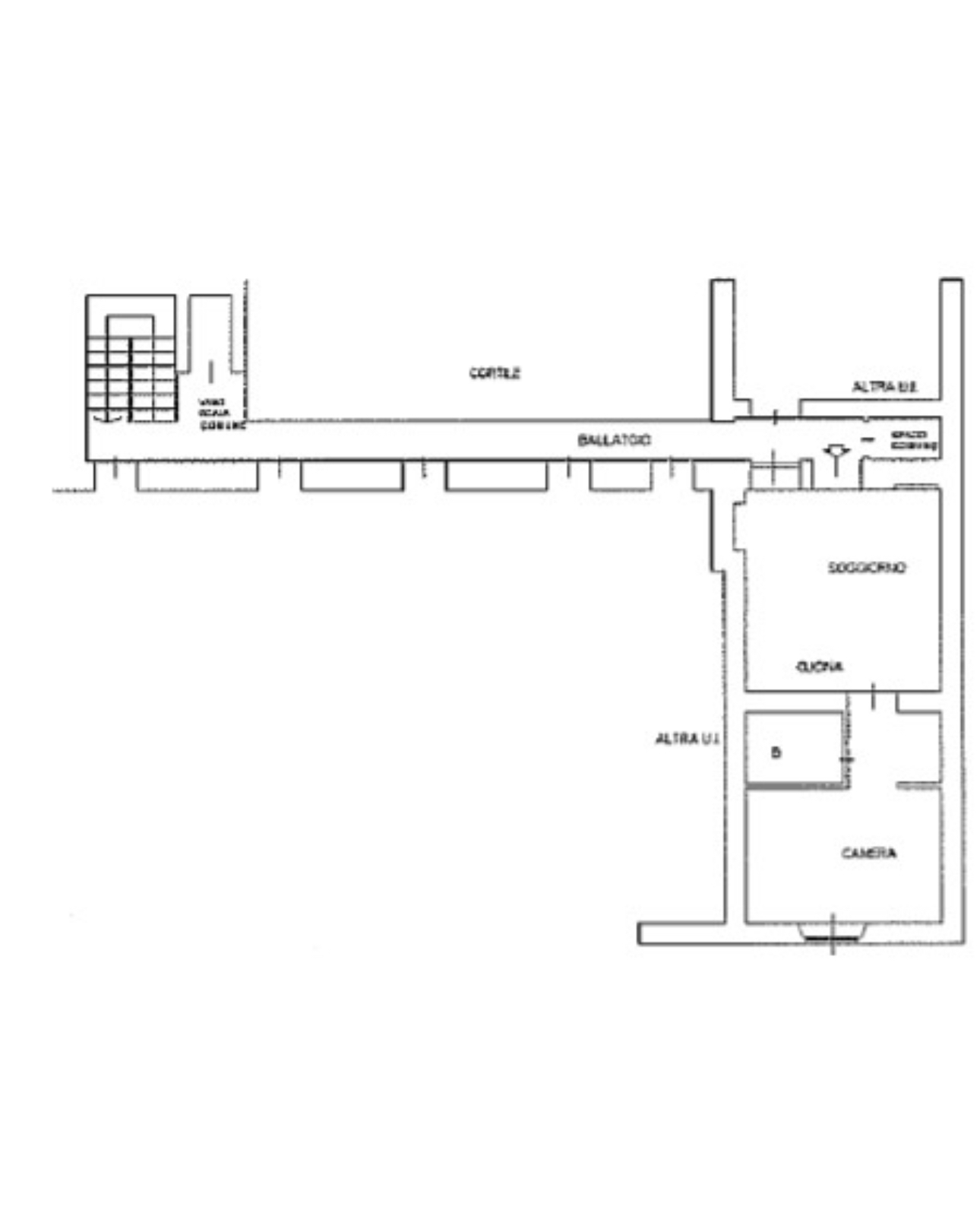 L’appartamento è composto da: ingresso su soggiorno con cucina a vista, disimpegno che conduce alla zona notte, bagno con box doccia, camera da letto matrimoniale.
