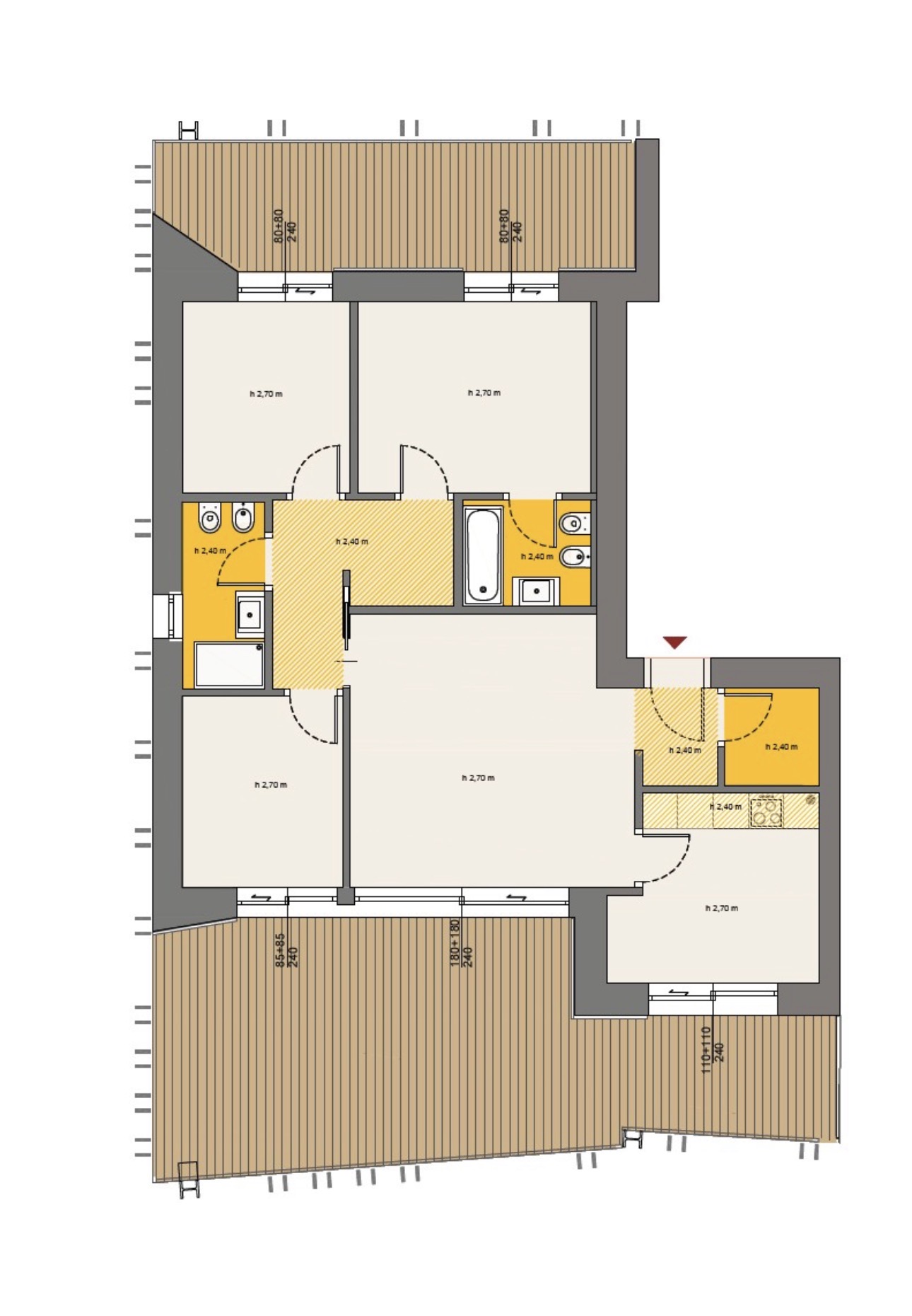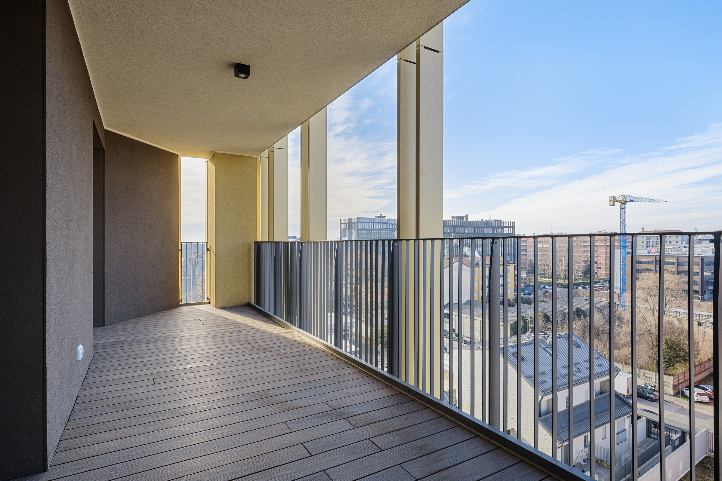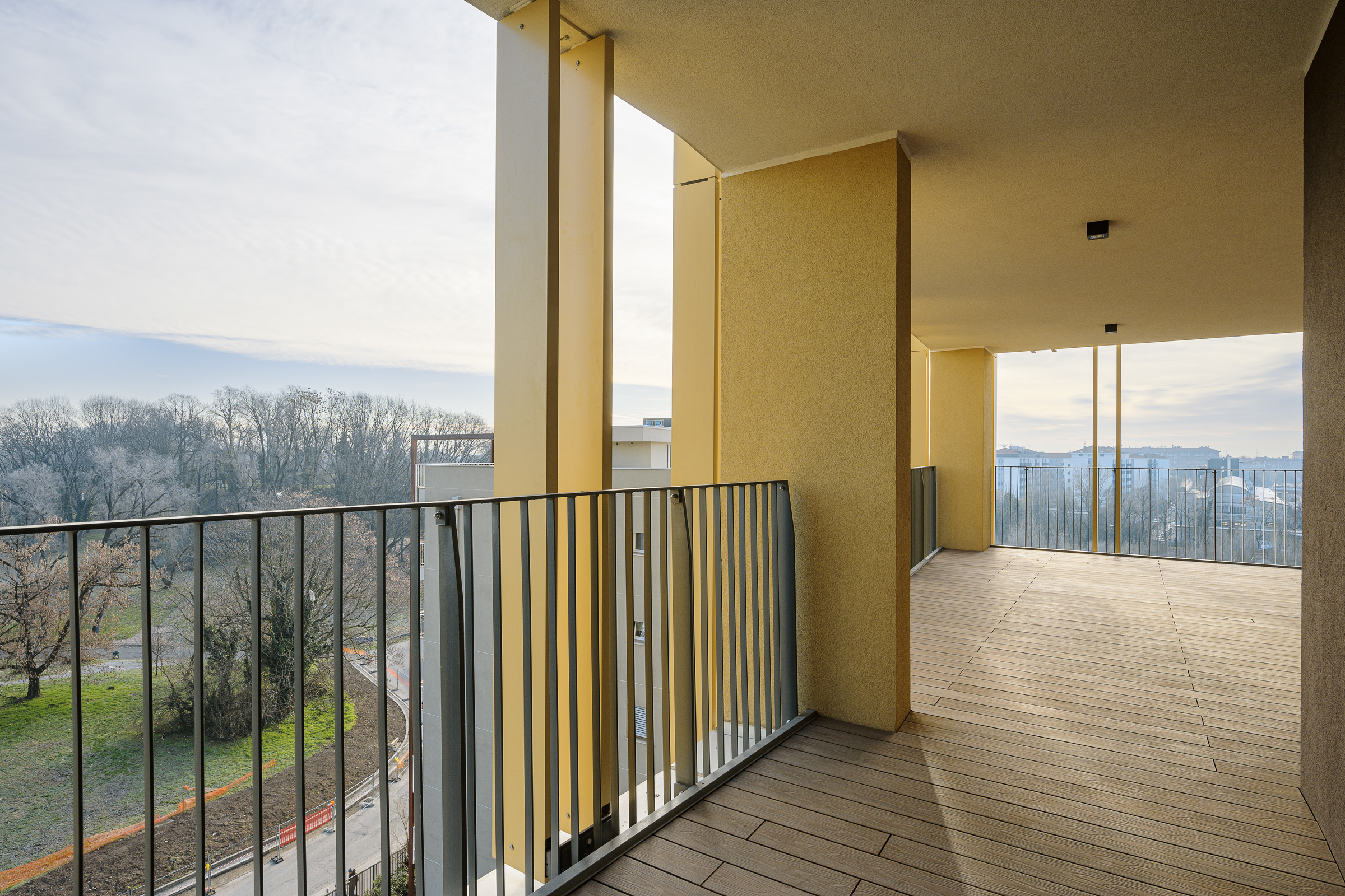 Questo appartamento offre una vista mozzafiato con un’ampia balconata, la terrazza di 40m e le vetrate a tutta altezza che donano una luminosità unica.